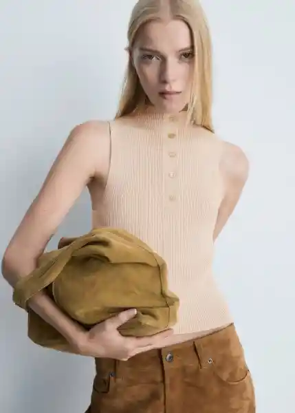 Cierre de Botones en el Cuello, Cuello Perkins, Diseño Entallado, Diseño Recto, la Modelo Mide 180 cm y Lleva Una Talla S, Sin Mangas, Tejido de Canalé, Tejido de Punto Fino - 77075641_08.