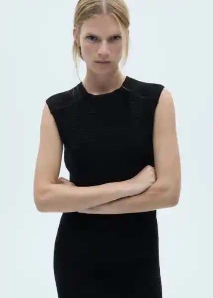 Costuras Decorativas, Cuello Redondo, Diseño Crop, la Modelo Mide 178 cm y Lleva Una S, Sin Mangas, Tejido de Punto Fino, Total Look - 77057645_99.