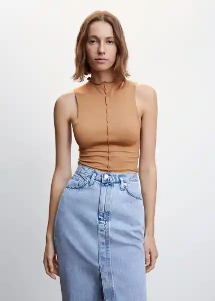 Costuras Decorativas Cuello Redondo Diseño Entallado Sin Mangas Tejido de Punto Fino Tejido Elástico - 47075876_30.