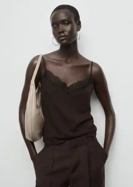 Cuello Escotado Detalles en Puntilla Diseño Recto Sin Mangas Tirantes Finos - 17097801_30.
