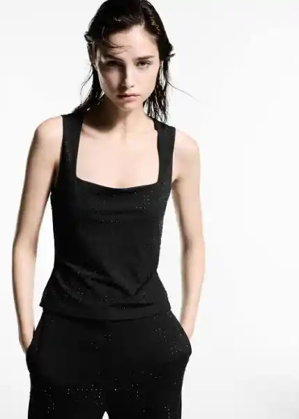 Cintura Entallada Colección Fiesta y Ceremonia Cuello Escotado Cuello Solapa Caja Detalle de Strass Diseño Estándar Estructura Plana Ligero la Modelo Mide 177 y Lleva Una Talla S/36 Largo Standard Silueta Slim Sin Cierre Sin Mangas Slim Fit - 17149065_99.