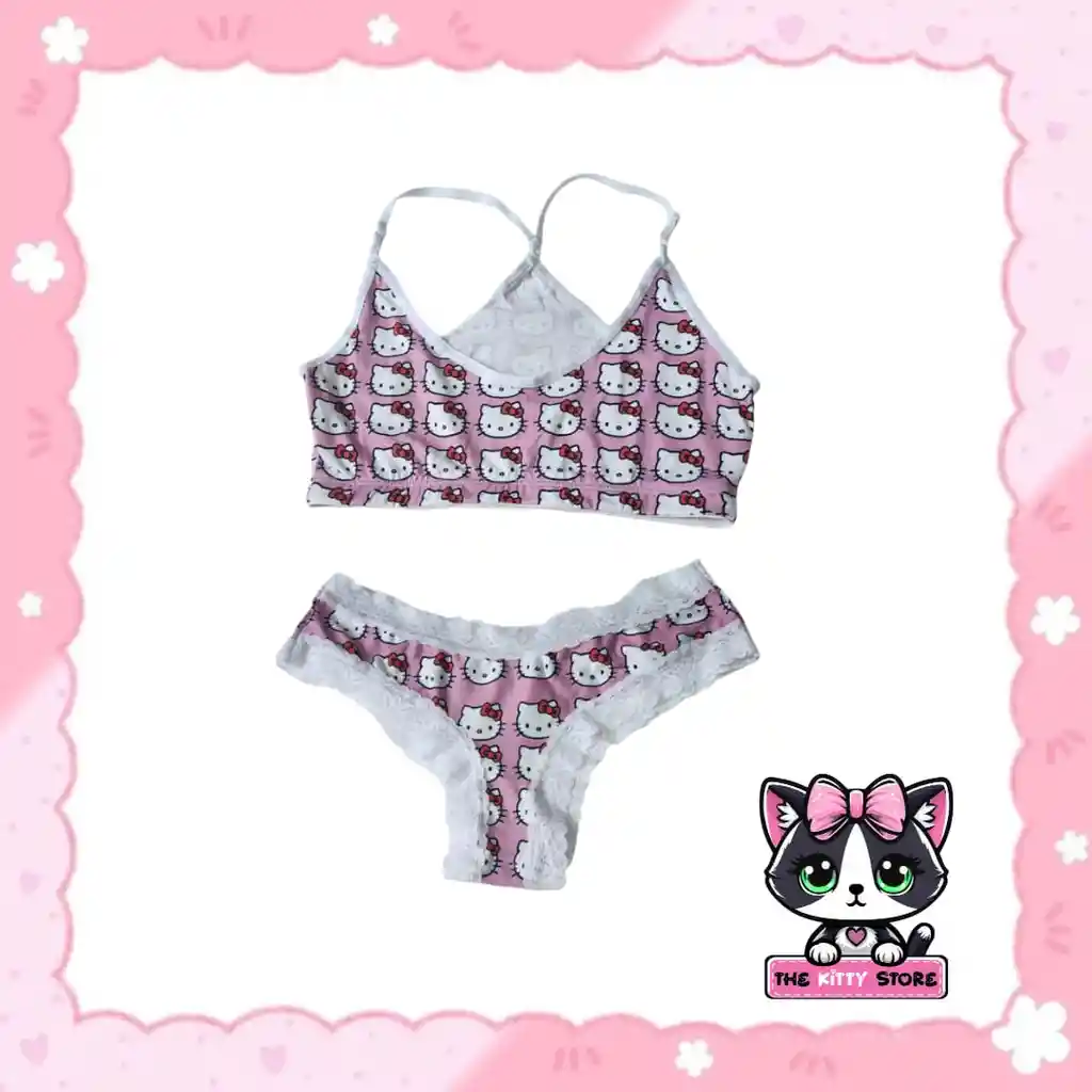 ELABORADO EN TELA PIEL DE DURAZNO COLOR ROSADO, TALLA S/M, TANGA CLASSIC CON ENCAJE EN COLOR BLANCO Y DISEÑO DE HELLO KITTY...