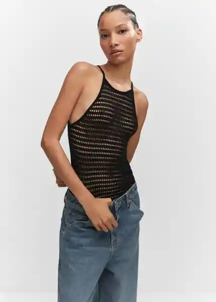 Cuello Halter Diseño Crop Diseño Recto Sin Cierre Tejido de Punto Calado Tirantes Finos - 47098631_99.