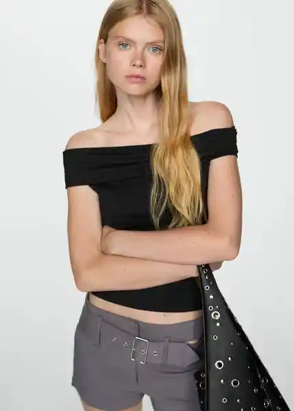 Cuello Barco, Diseño Crop, Diseño Entallado, Diseño Off-Shoulder, Hombros Descubiertos, la Modelo Mide 178 cm y Lleva Una S, Manga Corta, Sin Cierre, Tejido Elástico - 77071506_99.