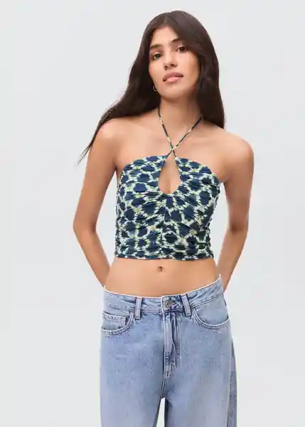 Cuerpo Fruncido Detalle Abertura Circular en el Pecho Diseño Estampado Diseño Recto Sin Mangas Tejido Fluido Top Cuello Halter Total Look - 17023278_56.