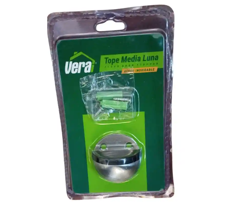 Tope para puerta magnético marca Vera pata instalacion en piso Media luna acero inoxidable