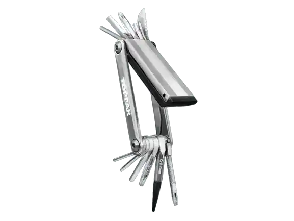 Mini Herramienta de Precisión Calidad Profesional y 18 Funciones Con Funciones Integradas de Reparación de Neumáticos Sin Cámara. Las Herramientas de Reparación Sin Cámara y el Compartimento Del Tapón de Reparación de Neumáticos se Almacenan Dentro Del Cuerpo de la Herramienta Para un Perfil Aerodinámico. Perfecto Para Cualquier Reparación de Carreteras o Senderos. Material: Acero al Cromo Vanadio Herramientas: Llaves Allen de 2 / 2.5 / 3/4/5/6 mm Llaves T10 / T25 # 2 Phillips Herramienta de Inserción de Tapón / Escariador de Llantas 2 en 1 de Acero Inoxidable Tope de Herramienta Cuchillo / Sierra Dentada Tope de Aire Tamaño: 76 x 41 x 18 cm Peso: 119 g / 4.20Oz.