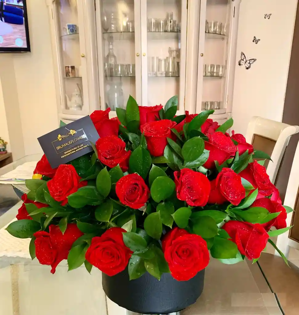 Hermoso Topiario de rosa, elaborado con 20 Rosas de exportación con apliques de rusco
