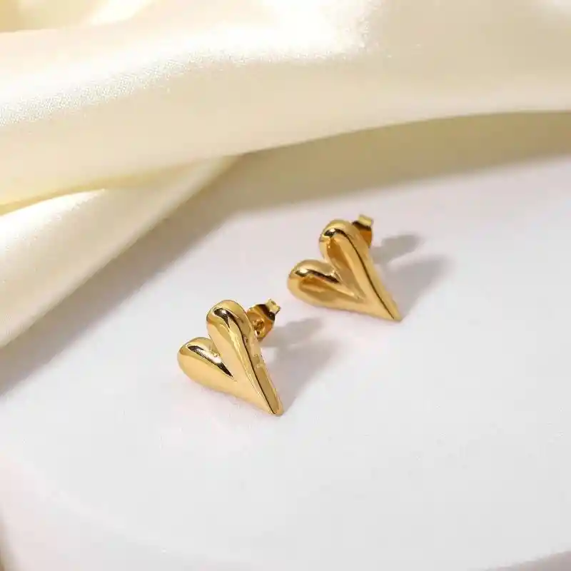Topitos dorados en forma de corazón, divinos para usar en el día a día. (Precio por par) Material: Rodio Cuidados: Recomendamos guardar por separado cada accesorio, almacenarlos en lugares secos y a temperatura ambiente; limpiarlos con un pañito o franela y sin ningún tipo de producto, evitar contacto con productos químicos como cremas y perfumes, no dormir ni bañarse con ellos. La durabilidad de los accesorios depende 100% del cuidado de cada persona.