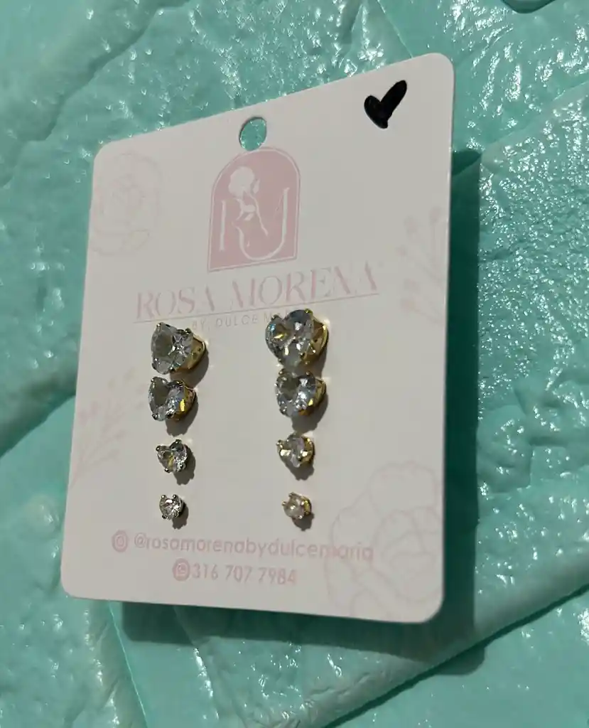 TOPOS ACERO DORADO CORAZON CIRCON BLANCO X4 PARES COD.102510