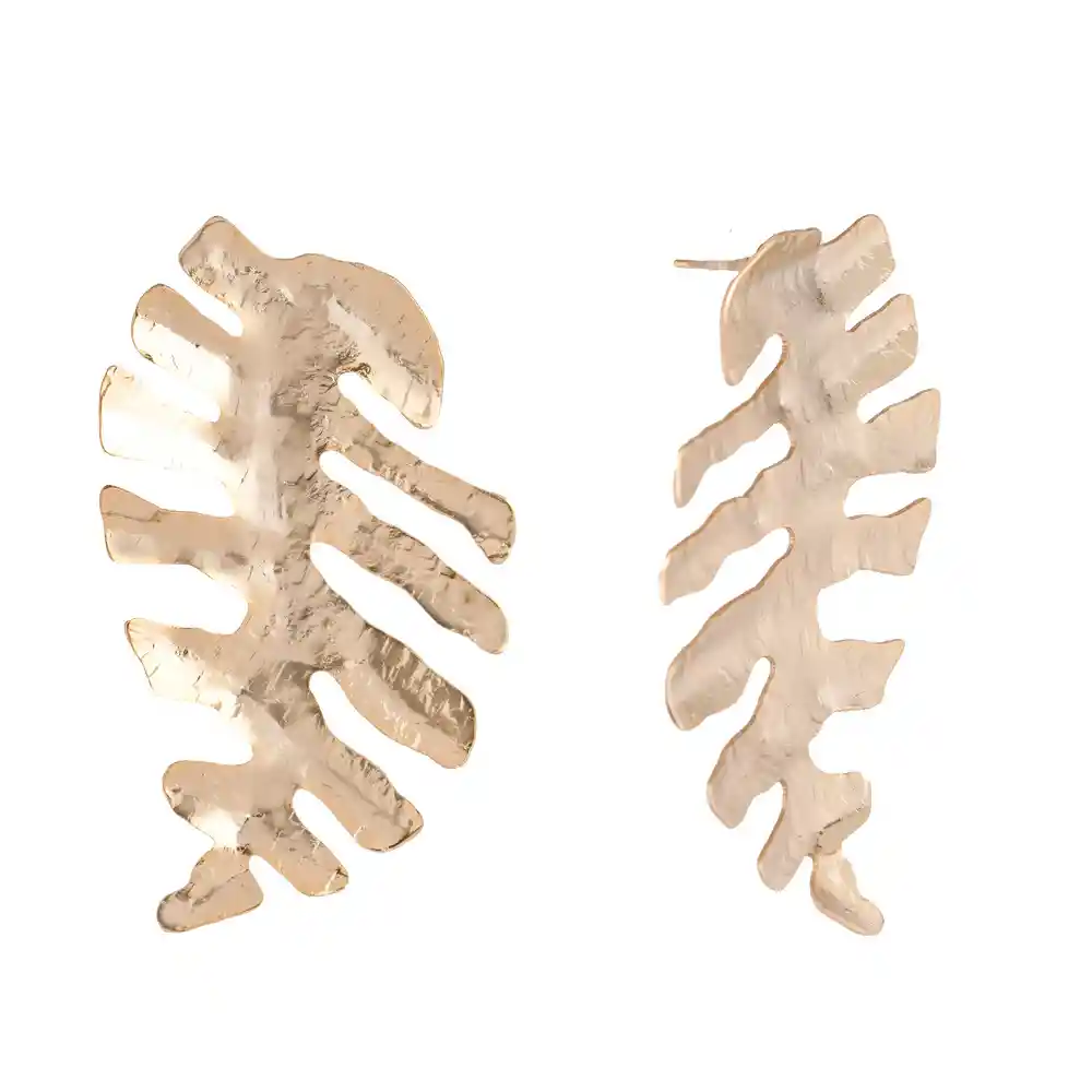 MARIA RESTREPO ENIGMA JOYERÍA La forma de estas hojas es única y perfecta para cualquier ocasión en la que queramos lucir un accesorio grande y vistoso que atraiga la atención. Combínala como más te guste. • Topos en bronce con baño oro 24k • Medidas: Largo 7,4 cm, Ancho 4,2 cm, Alto 1,3 cm • Peso en gramos: 5,6g CUIDADOS • Evita el contacto directo con cremas, perfumes, splash, lacas, tinturas, bronceadores, cloro y alcohol. • Guarde cada producto en su empaque individual para evitar rayones, enredos, cambio de forma o desgaste en acabados. • Evite el contacto con agua de mar y agua de piscina. • Evite caídas, golpes o manipulación fuerte del producto. GARANTÍA • Garantía en tiendas físicas y plataformas Online.
