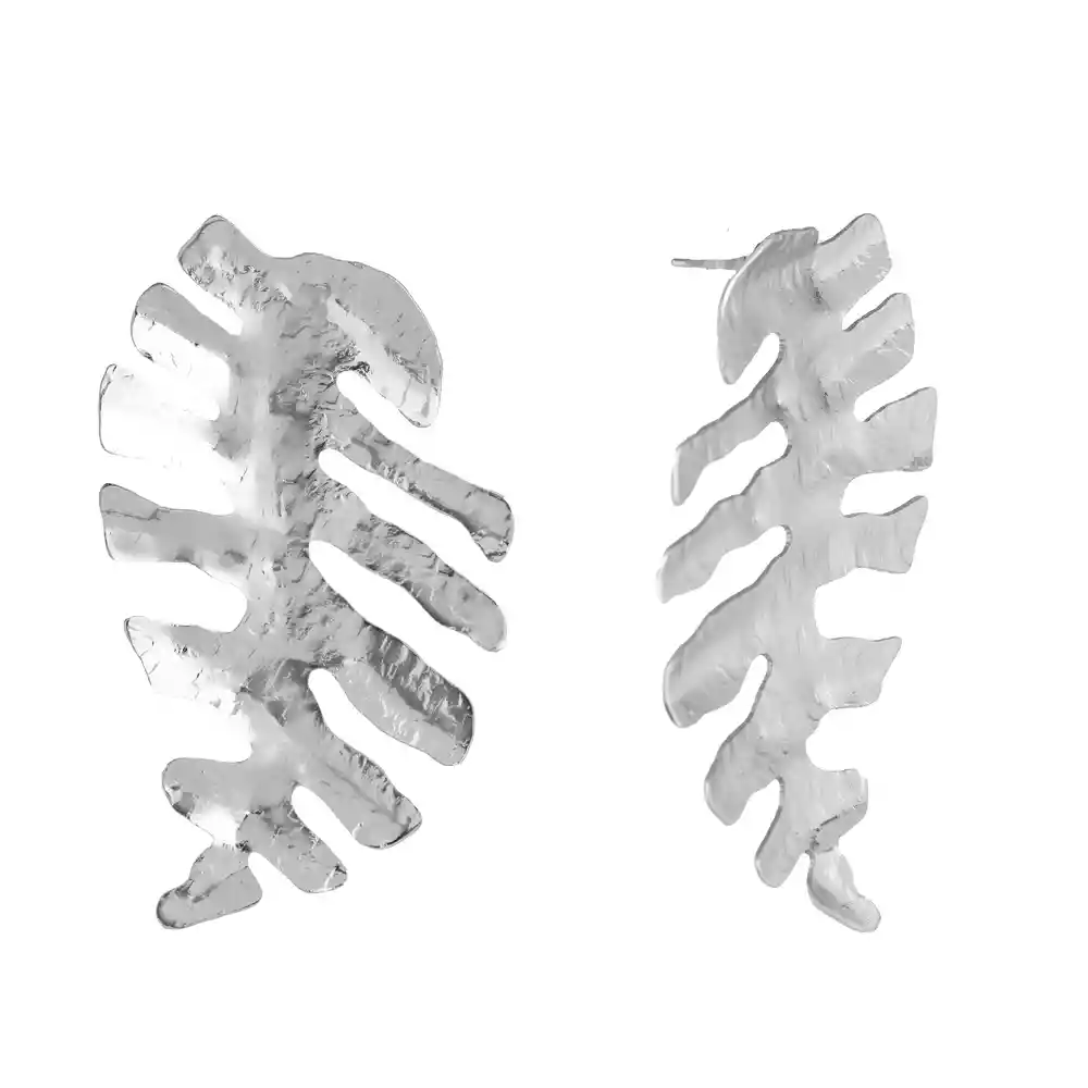 MARIA RESTREPO ENIGMA JOYERÍA La forma de estas hojas es única y perfecta para cualquier ocasión en la que queramos lucir un accesorio grande y vistoso que atraiga la atención. Combínala como más te guste. • Topos en bronce con baño plata ley 925 • Medidas: Largo 7,4 cm, Ancho 4,2 cm, Alto 1,3 cm • Peso en gramos: 5,6g CUIDADOS • Evita el contacto directo con cremas, perfumes, splash, lacas, tinturas, bronceadores, cloro y alcohol. • Guarde cada producto en su empaque individual para evitar rayones, enredos, cambio de forma o desgaste en acabados. • Evite el contacto con agua de mar y agua de piscina. • Evite caídas, golpes o manipulación fuerte del producto. GARANTÍA • Garantía en tiendas físicas y plataformas Online.