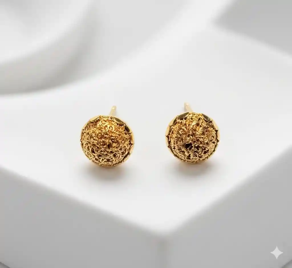 Topos en brince con baño en oro y tejidos con hilo de joyeria en forma de nido de pajaro .Elaboración: Artesanal con posibles variaciones en colores y acabados Garantía: 30 días en acabados bajo condiciones normales de uso
