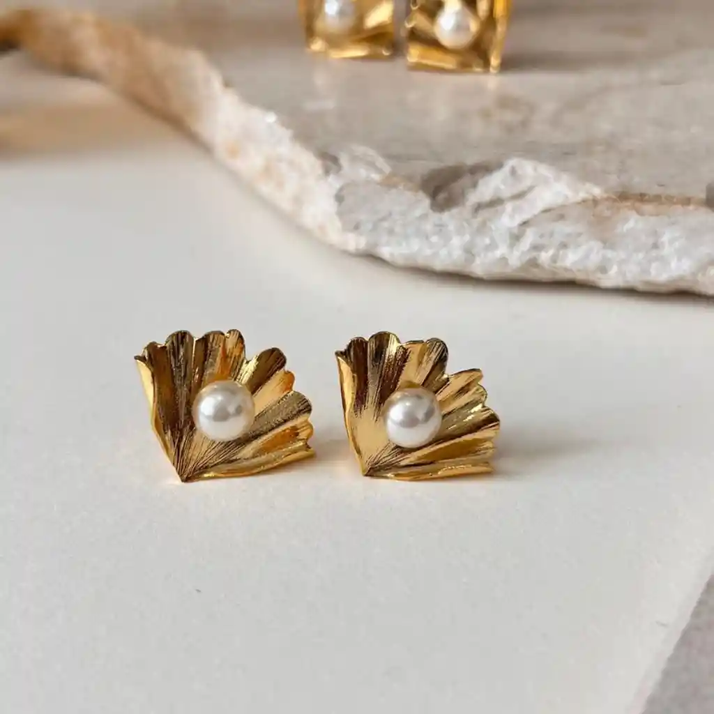 Diseño en bronce bañado en oro, acompañado con piedra perla