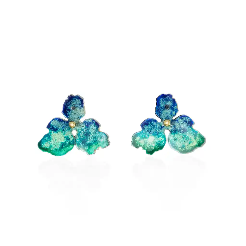 Topos orquídea de acrílico recuperado pintado a mano y cadenita goldfiled