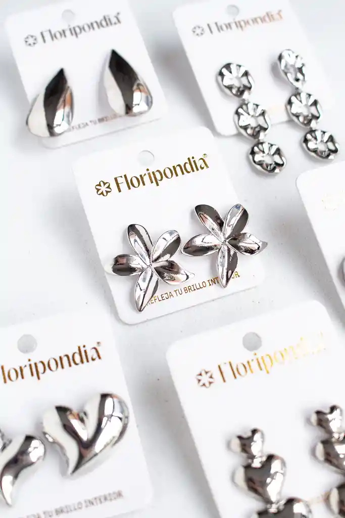 Aretes elaborados en acero plateado. Incluye: 1 par de topos flor plateado. Recibe con tu compra una FLORIBAG gratis, para que guardes por separado tus accesorios. *Ten presente que algunas de las imágenes pueden estar ambientadas con otros productos que se venden por separado.