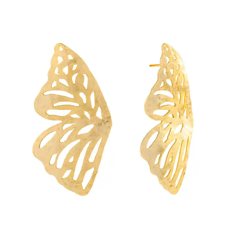 MARIA RESTREPO ENIGMA JOYERÍA Estas alas de mariposa enmarcan el rostro, eso sin mencionar que su acabado es único y que son súper ligeros. Perfectas para ocasiones elegantes en épocas de primavera y verano. ¡Para que brilles por tu cuenta! • Topos en bronce con baño oro 24k • Medidas: Largo 5,1 cm, Ancho 2,7 cm, Alto 1,2 cm • Peso en gramos: 2,7g CUIDADOS • Evita el contacto directo con cremas, perfumes, splash, lacas, tinturas, bronceadores, cloro y alcohol. • Guarde cada producto en su empaque individual para evitar rayones, enredos, cambio de forma o desgaste en acabados. • Evite el contacto con agua de mar y agua de piscina. • Evite caídas, golpes o manipulación fuerte del producto. GARANTÍA • Garantía en tiendas físicas y plataformas Online.