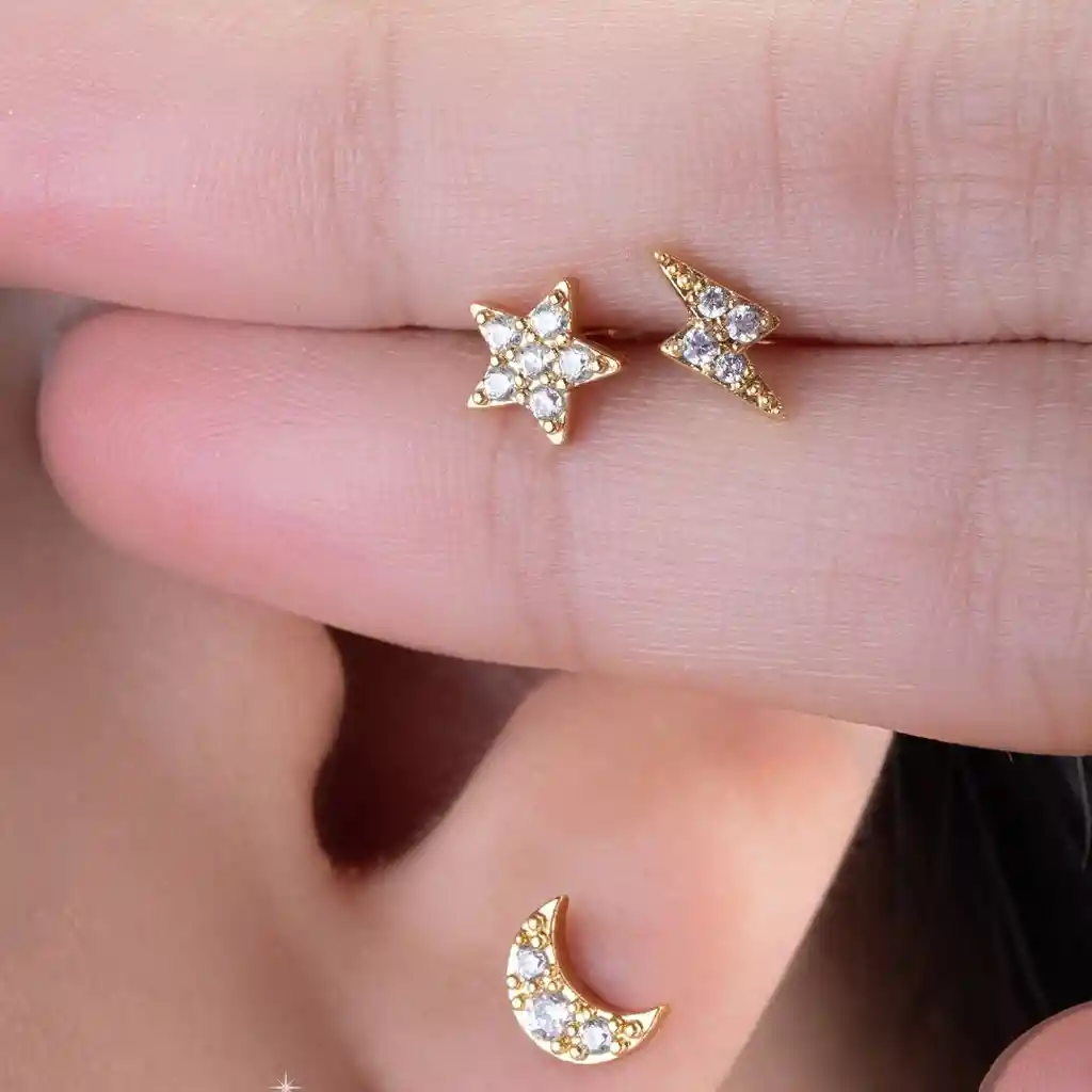 3 pares de topos, Enchapados en ORO 18k, antialérgicos con Garantía de 1 año.