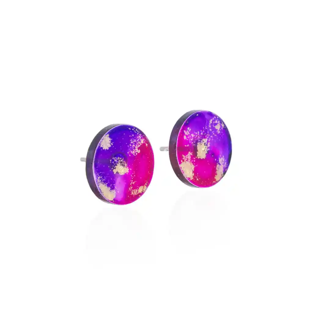 Topos círculo pequeños en acrílico recuperado pintado a mano y pines en plata 925