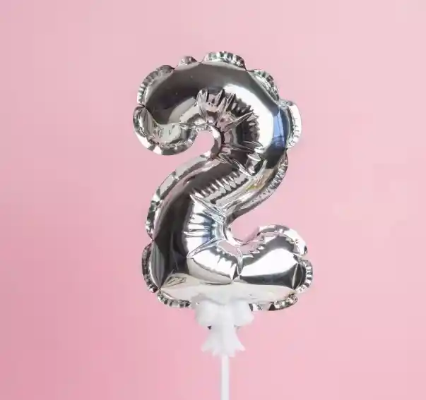 topper para torta de numero color plateado numero dos en mini globo con base plástica incluida fácil de usar material dl globo metalizado IMPORTANTE PARA INFLARLO DEBES OPRIMIR LO QUE TRAER DENTRO EL GLOBO Y EL SOLITO SE COMIENZA A INFLAR, TENIENDO CUIDADO DE NO ROMPER EL GLOBO SI DESEAS ALGO ADICIONAL INDICANOS Y CON GUSTO TE COABORAMOS