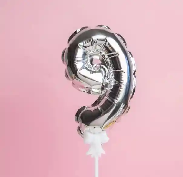 topper para torta de numero color plateado numero nueve en mini globo con base plástica incluida fácil de usar material dl globo metalizado IMPORTANTE PARA INFLARLO DEBES OPRIMIR LO QUE TRAER DENTRO EL GLOBO Y EL SOLITO SE COMIENZA A INFLAR, TENIENDO CUIDADO DE NO ROMPER EL GLOBO SI DESEAS ALGO ADICIONAL INDICANOS Y CON GUSTO TE COABORAMOS