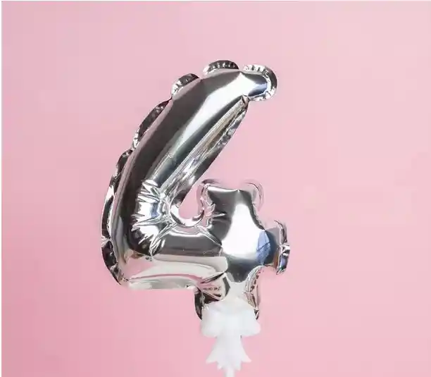 topper para torta de numero color plateado numero cuatro en mini globo con base plástica incluida fácil de usar material dl globo metalizado IMPORTANTE PARA INFLARLO DEBES OPRIMIR LO QUE TRAER DENTRO EL GLOBO Y EL SOLITO SE COMIENZA A INFLAR, TENIENDO CUIDADO DE NO ROMPER EL GLOBO SI DESEAS ALGO ADICIONAL INDICANOS Y CON GUSTO TE COABORAMOS