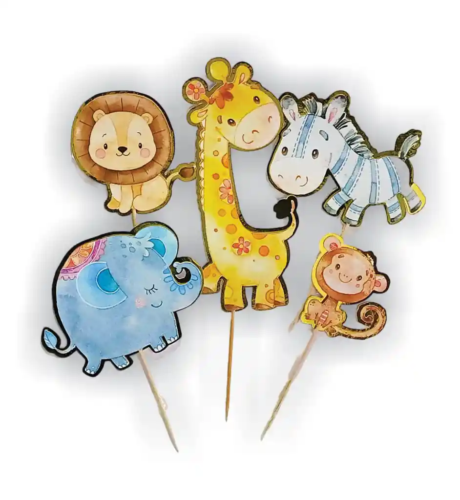 Decoracion para Torta de Animales De La Selva, viene paquete x 5 figuras