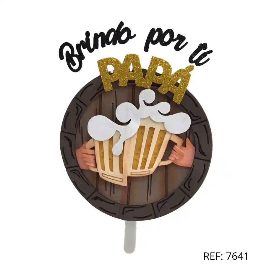 Topper decorativo “Brindo por ti papá” con vasos de cerveza, ideal para pasteles o detalles del Día del Padre.