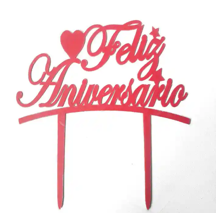 Topper para Torta Feliz Aniversario Rojo X 1 Unidad