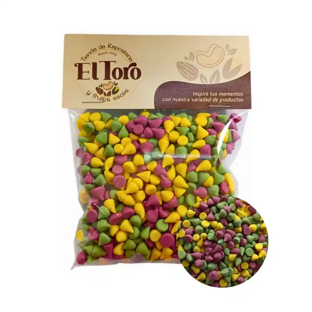 TOPPINGS O LLUVIA GOLOCHIPS CHOCOLATE 50 G Basta con esparcir sobre la superficie deseada o usarlo en la decoración de los dulces, tortas, helados, donuts, pasteleria, postres entres otros.