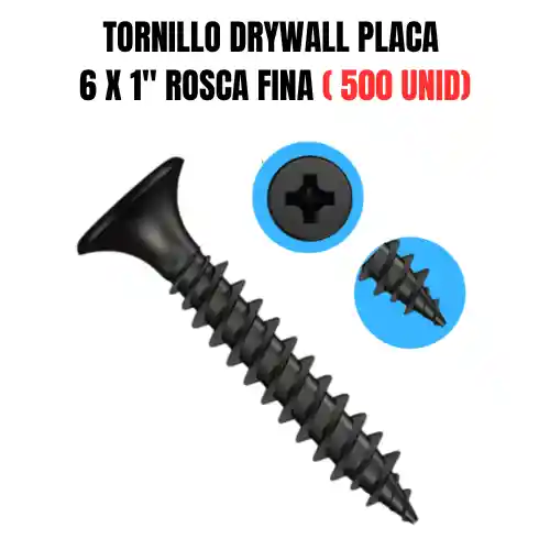 Tornillo 6x1" Drywall Rosca Fina Tapado X 500 Unid