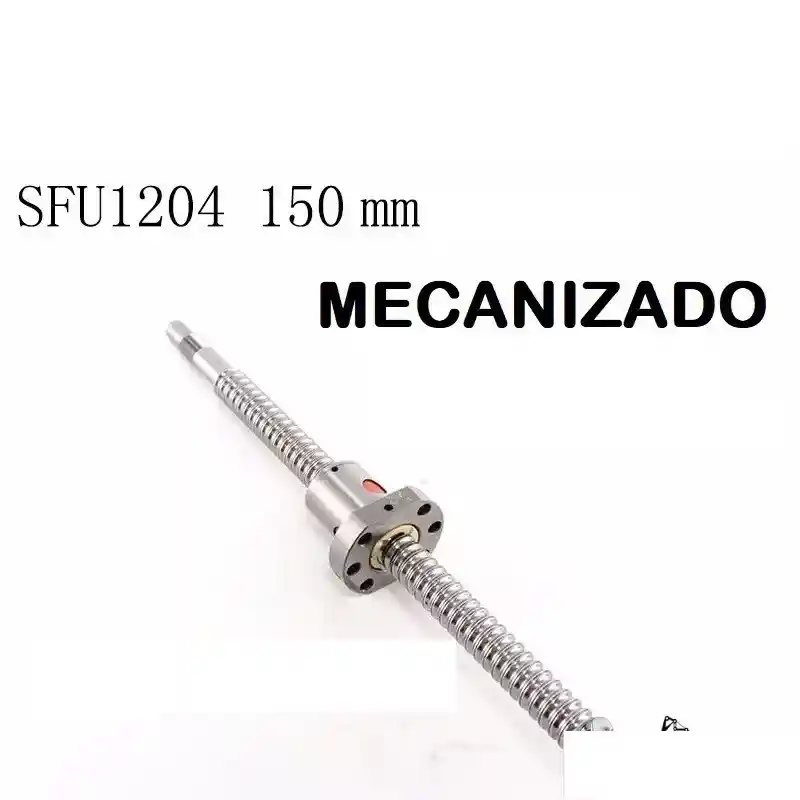 Los husillos de bolas, ademas de poder aplicar o soportar altas cargas de empuje, pueden hacerlo con un minimo de friccion interna. Se fabrican para tolerancias estrechas y, por lo tanto, son adecuadas para su uso en situaciones en las que es necesaria una alta precision. El conjunto de bola actua como la tuerca, mientras que el eje roscado es el tornillo. Caracteristicas: Diametro 12mm. Longitud: 15cm Tornillo de bola y tuerca Mecanizado final: Diametro exterior mecanizado: 8mm Paso por vuelta: 4mm. Material: Acero GCR 15 Grado: C7 LA COMPRA INCLUYE: 1X TORNILLO BOLAS RECIRCULANTE MECANIZADO SFU1204 15cm 1x TUERCA