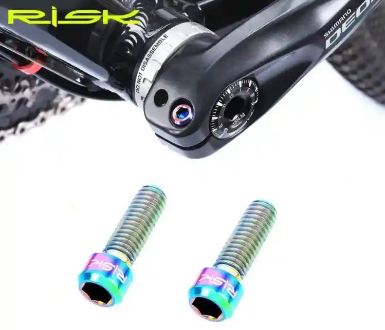 *Tornillos Titanio Bicicleta RISK MTB Y RUTA BIELA M5X18MM *Kit por 2 Unidades *2 Tornillos Aleación de Titanio *Tornillos Mas Livianos y Resistentes *Aumenta la Estética de tu Bicicleta *Marca: RISK *Referencia: M6X18MM *Para: Biela MTB Y RUTA *Color: Rainbow (Tornasol) *Material: TC4 de Aleación de Titanio *Peso: 1,4gramos x Tornillo *Peso Total Set :2,8 gramos *Diametro de la Cabeza: 9mm *Largo: 18mm *Herramienta : Llave Bristol/Allen 5mm *Torque:12-14N.M *Empaque de Lujo: Ideal Para Regalo