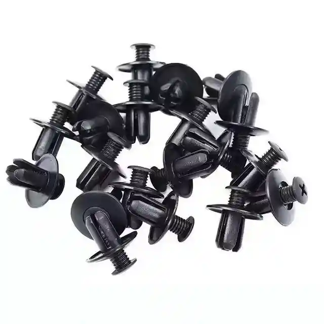 Color: negro. Cantidad: 10 unidades. Material: plástico. Contenido paquete: 1 paquete con 10 unidades. Diámetro de la cabeza (máx.): 20 mm. Tamaño del orificio de ajuste: 8 mm. Longitud del vástago: 14 mm. Características: La postpresión del remache amplía las patas para una fijación rápida y permanente. Se utiliza ampliamente para guardabarros, parachoques, puertas u otras superficies de automóviles. Estos remaches están hechos de material plástico y se ajustan a orificios de 8 mm de diámetro.