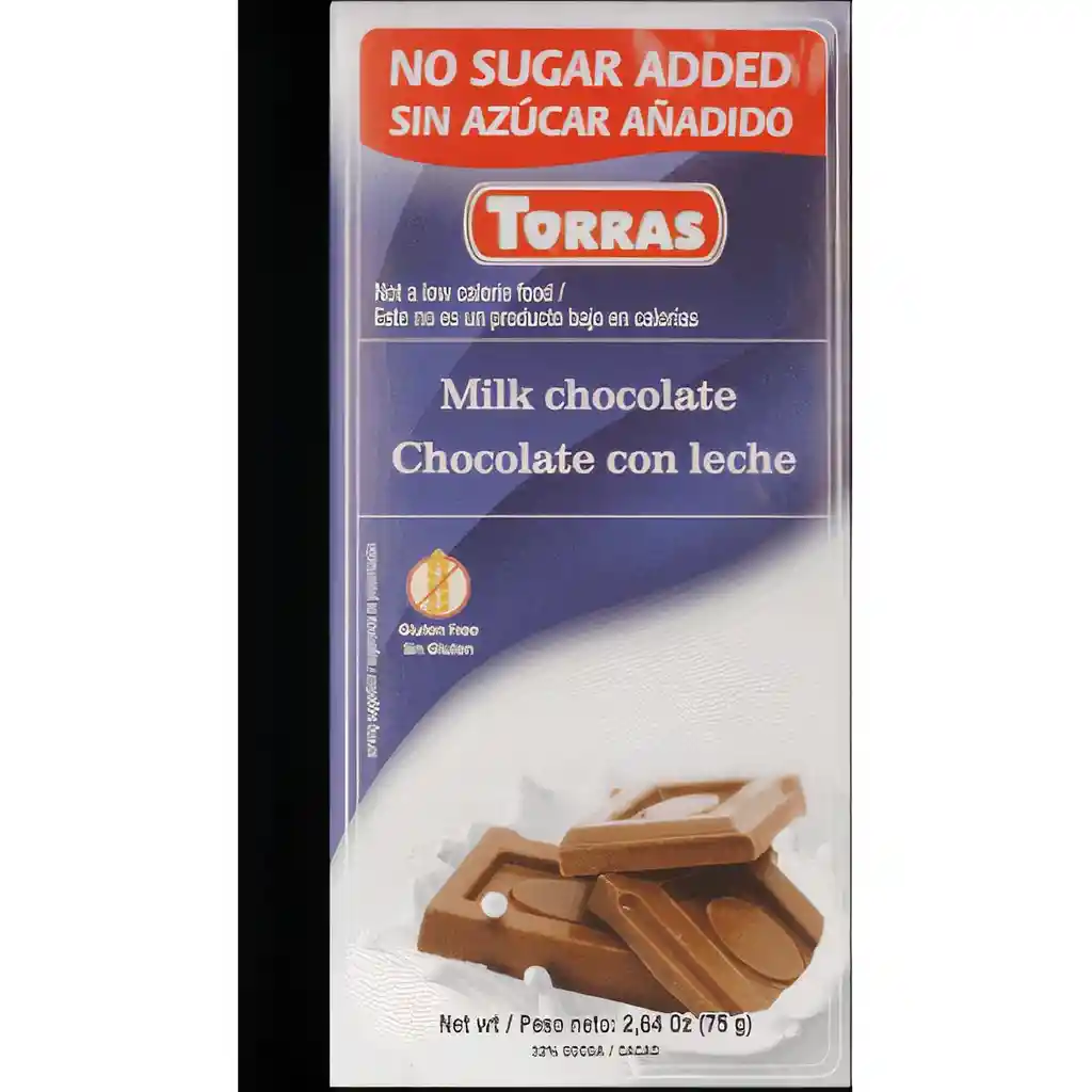 Pastas de chocolate con leche sin azúcar añadida.