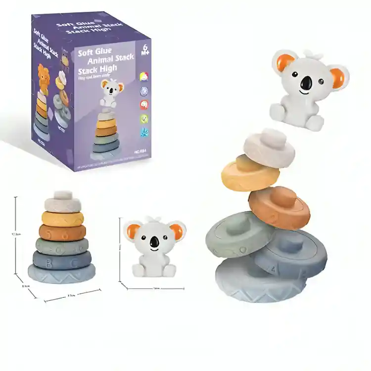Esta torre apilable es perfecta para que los más pequeños aprendan jugando. Sus piezas suaves, coloridas y con diferentes texturas estimulan los sentidos mientras desarrollan habilidades motrices y cognitivas. 🔸 Incluye 6 aros de silicona suave con texturas y números/letras 🔸 Remate superior con figura de koala 🔸 Segura para morder (libre de BPA) 🔸 Ideal para fortalecer la coordinación mano-ojo y el reconocimiento de formas y colores 🔸 Juguete sensorial recomendado desde los 6 meses 🎓 Beneficios: Estimula el desarrollo visual y táctil Ayuda a identificar colores, números y letras Refuerza la motricidad fina y lógica