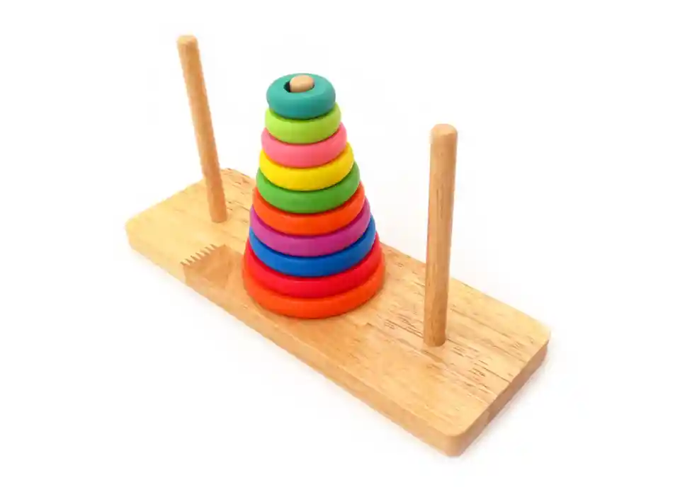 La Torre De Hanoi es un juego matemático simple pero divertido. el objetivo de este didáctico es realizar una evaluación de las funciones ejecutivas de los niños, trabajando la capacidad de planificación y resolución de problemas. Por medio de este didáctico se ve reflejada La motricidad la cual se relaciona con todos los movimientos de manera coordinada y voluntaria que realizan los niños con pequeños y grandes grupos de músculos. Estos movimientos constituyen la base para adquirir el desarrollo de las áreas cognitivas y del lenguaje. El juego consiste en pasar la torre de un lugar al otro sin que una pieza de mayor tamaño quede por encima de una de menor tamaño. Este juego desarrolla las siguientes habilidades: Desarrolla la agilidad mental pasando rápidamente la pieza de un lugar al otro Desarrolla el pensamiento lógico matemático contando y contando! Desarrolla la autonomía por el juego Estimula la concentración completando el juego Desarrolla la paciencia Desarrolla la coordinación visual espacial Potencia la Imaginación y creatividad: los niños crearán muchas historias diferentes alrededor de este juguete. Esto favorecerá que desarrollen la imaginación y, con ello, más funciones cerebrales como la creatividad.