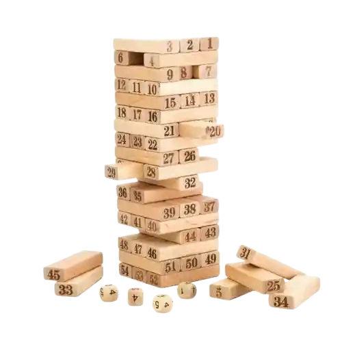 Por tu compra recibe: Torre Jenga Madera Bloques 54 Pcs Grande Numeros + 4 Dados Cantidad: 1 Torre + 4 Dados Tamaño Torre: Alto 26 cm - Ancho 7,5 cm - Largo 7,5 cm Tamaño Bloque: 7,5 x 2,3 x 1,2 cm Tamaño dado: 1 x 1 cm Calidad 100% garantizada ¡Compra con confianza y seguridad!