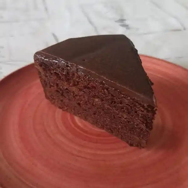 Bizcocho de chocolate, relleno de chocolate y cobertura de chocolate
