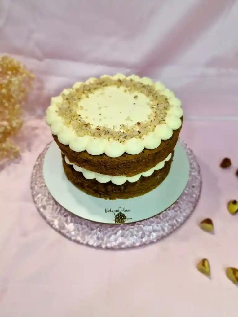 Torta de zanahoria 6 porciones con frosting de queso crema y canela.