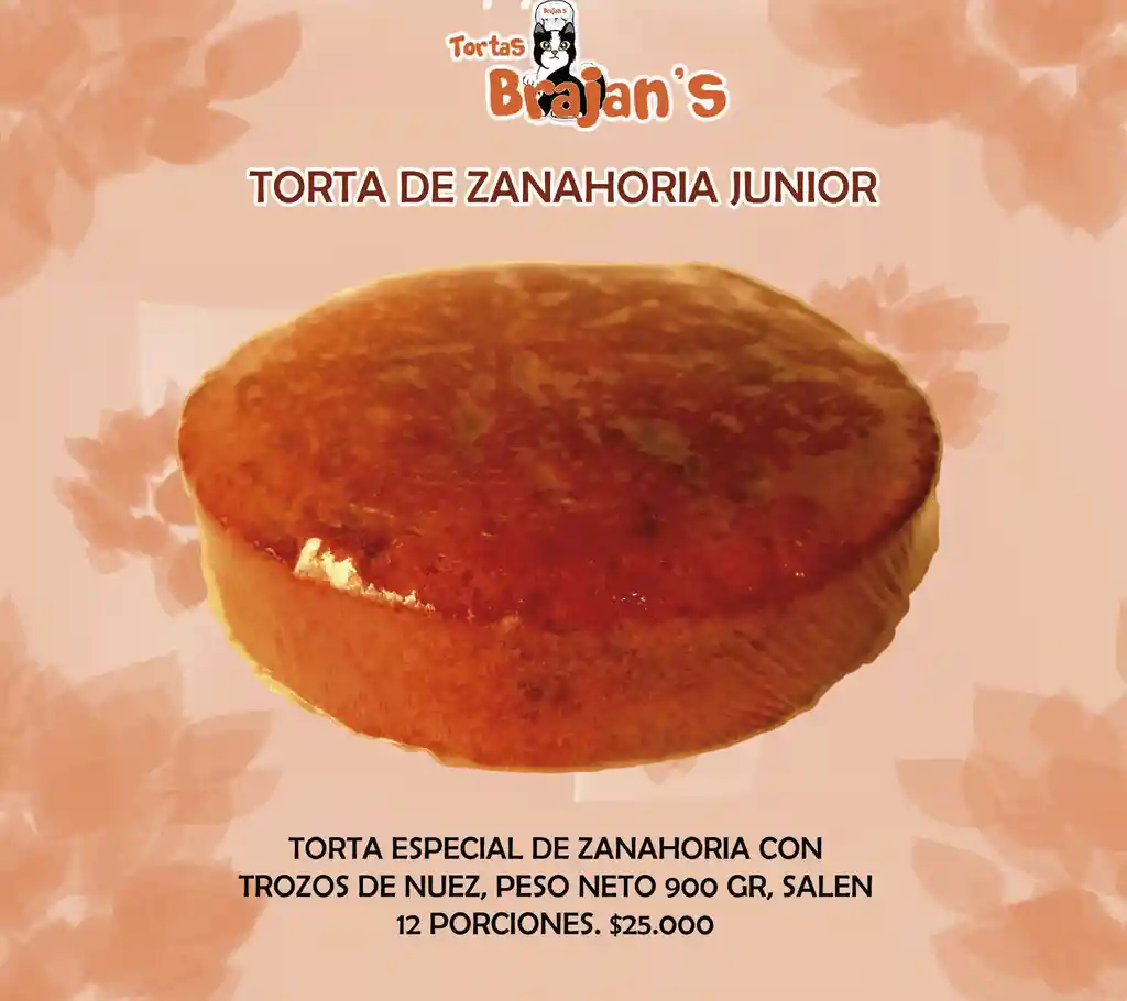 Torta especial de zanahoria con trozos de nuez, salen 12 porciones.