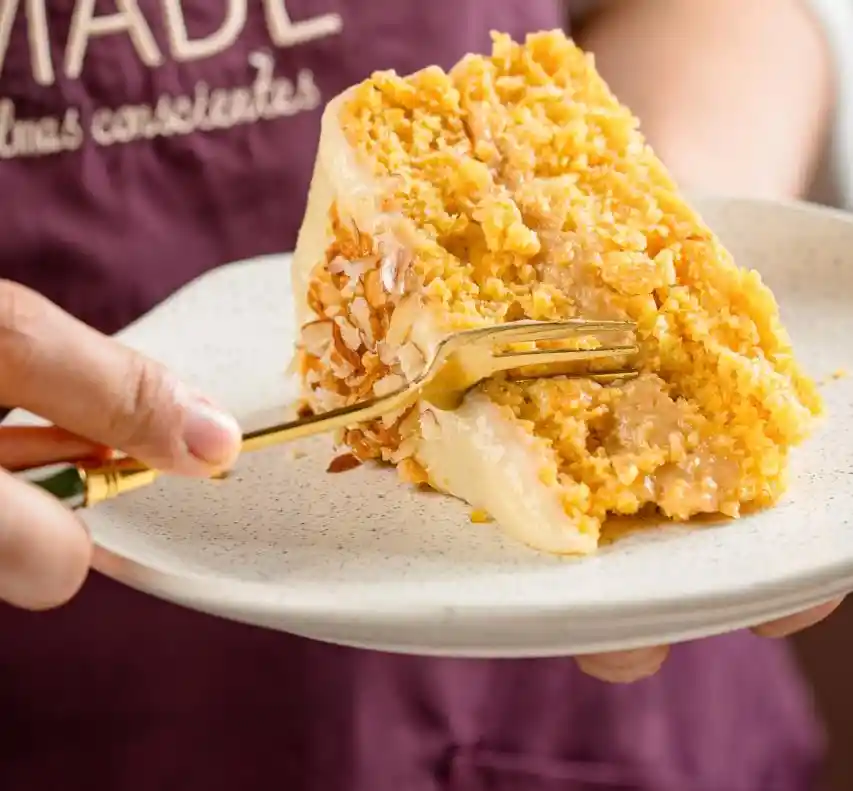 Torta humeda de zanahoria con frosting de yogurt griego, endulzada con estevia, sin harinas refinadas ni azucares añadidos.