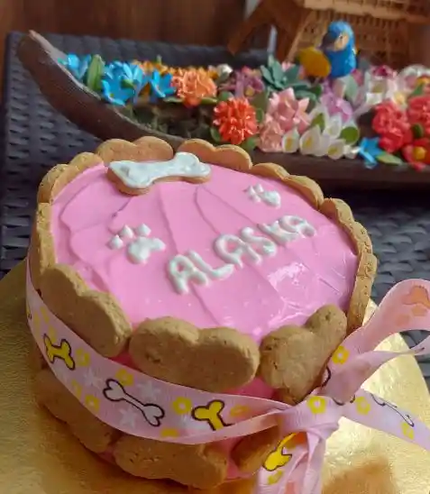 Torta pequeña de 2 a 6 porciones para perrita de hígados de pollo, zanahoria y harina de avena, sin sales ni grasas añadidas, decorada con yogurt griego sin azúcar