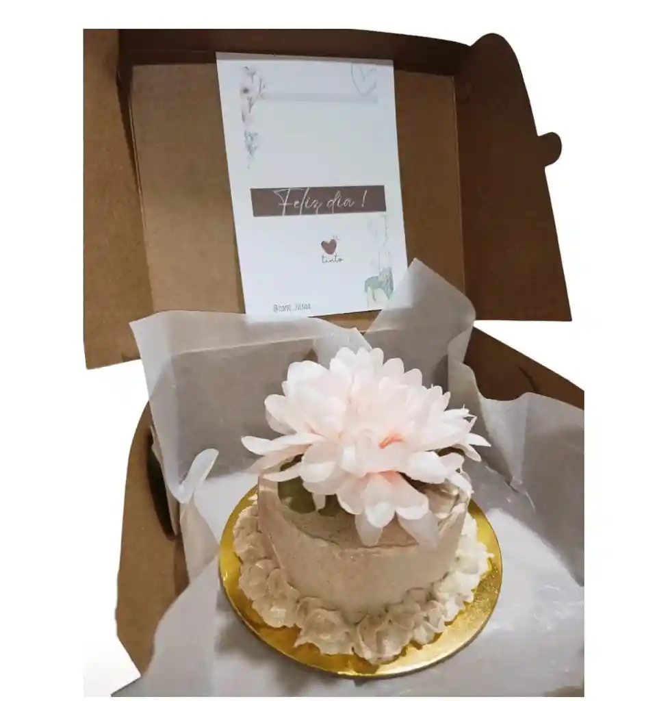 Torta personal para cumpleaños u otra celebración, deliciosa y hermosa. sabor a vainilla. diametro 11.5 cm aprox Incluye: Caja de carton calibre delgado Tarjeta Feliz día Flor artificial