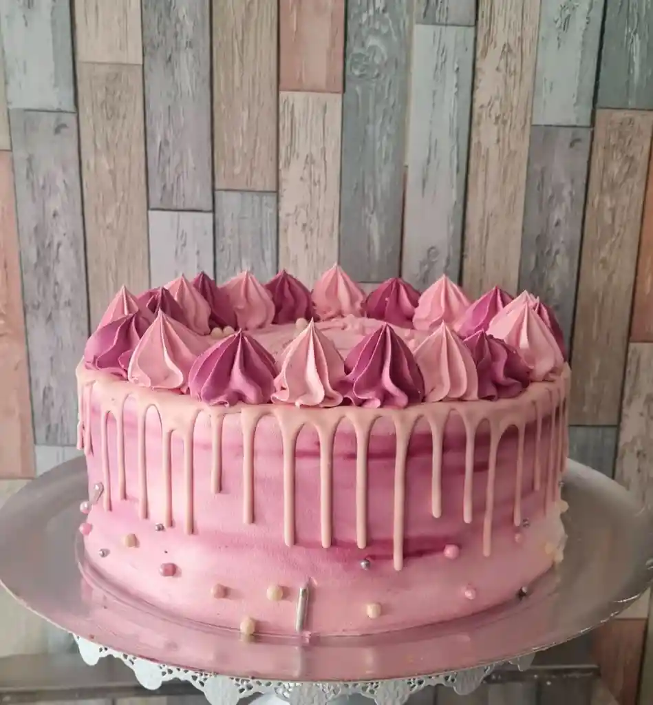 torta de tres leches con crema rosada en el exterior para 10 personas