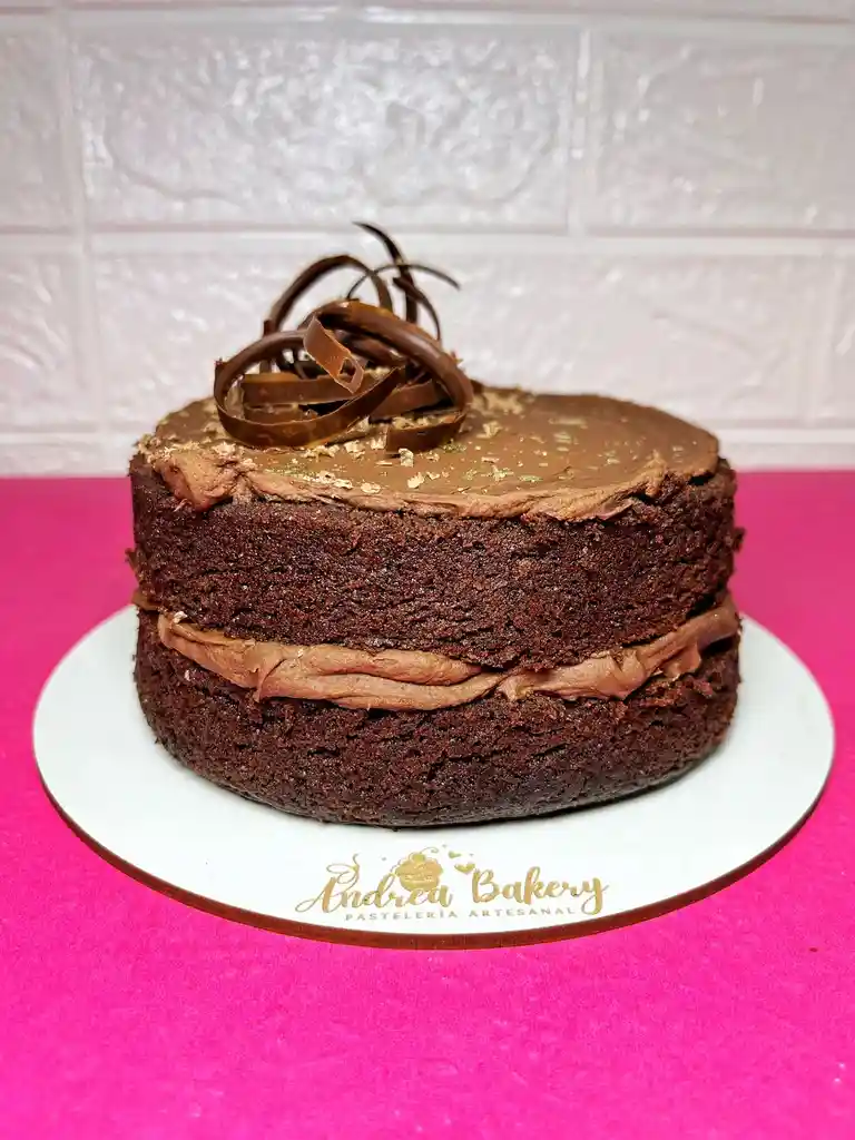 Deliciosa Torta de Chocolate húmeda con un relleno cremoso de Ganache de Chocolate semiamargo y decoración de Chocolate templado Incluye topper y vela