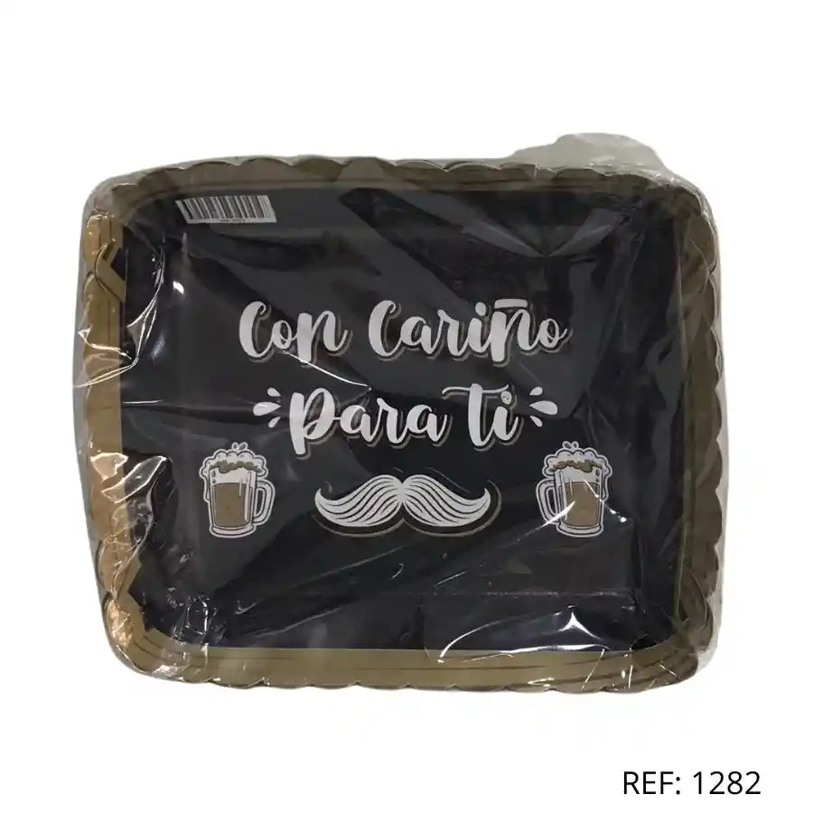Plato decorado con mensaje “Con cariño para ti”, bigotes y cervezas. Ideal para sorprender a papá.