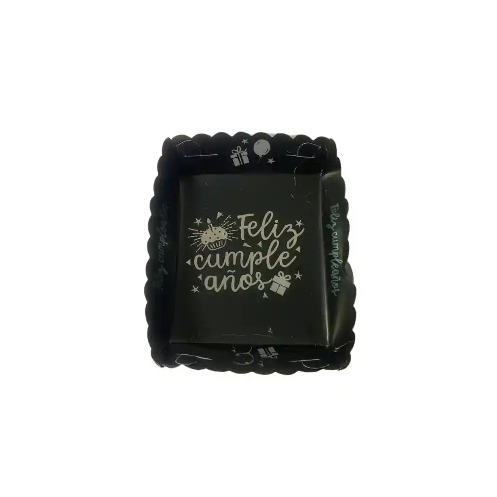 Tortero Negro Feliz Cumpleaños Plateado X 12