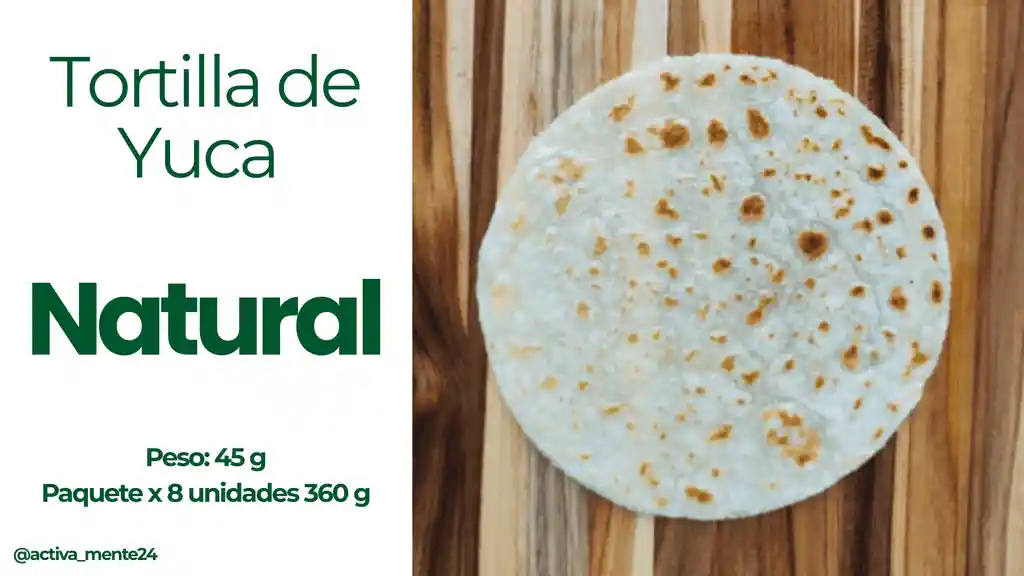 Tortilla de Yuca Natural Contenido: 8 Unidades x 45 g Peso: 360 gramos. (Alimento Congelado)