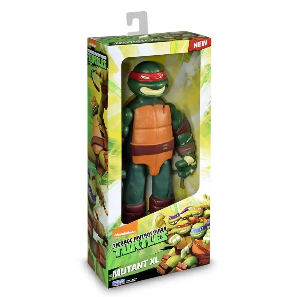 Tortuga Ninja XL *Dimensiones de la caja 31cm de alto X 14cm de ancho X 6cm de profundidad. *Material plástico *Semi articulada (6 articulaciones cabeza, brazos y piernas)